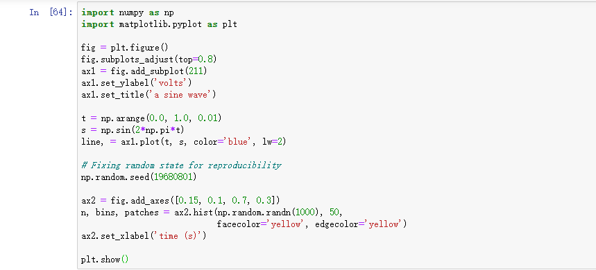 该标准使用是创建一个Figure实例,使用Figure创建一个或多个Axes或 Subplot实例,并使用Axes实例helper方法创建的图元。