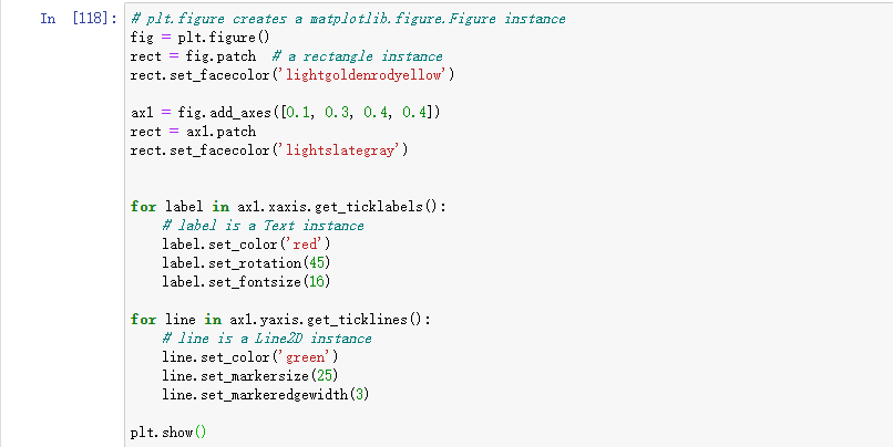 顶层容器Artist是 matplotlib.figure.Figure,它包含图中的所有内容。图的背景是 Rectangle,存储在中 Figure.patch。当您在图中添加子图(add_subplot())和轴(add_axes())时,它们将被附加到Figure.axes。这些也由创建它们的方法返回: