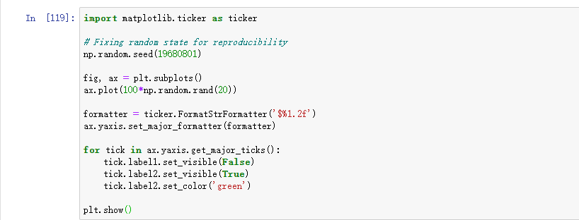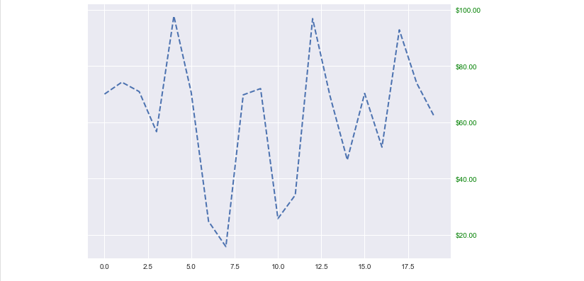 这是一个示例,该示例使用美元符号设置右侧刻度线的格式器,并在yaxis的右侧将它们设置为绿色。