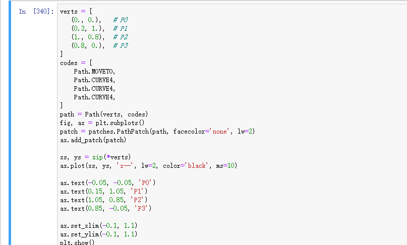 所有对象下面的matplotlib.patches对象是Path,它支持标准的moveto,lineto,curveto命令集,