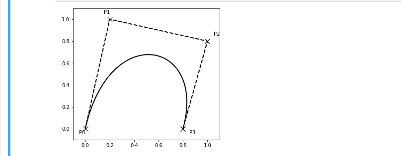 下面的示例显示了CURVE4Bézier样条曲线-贝塞尔曲线将包含在起点,两个控制点和终点的凸包中