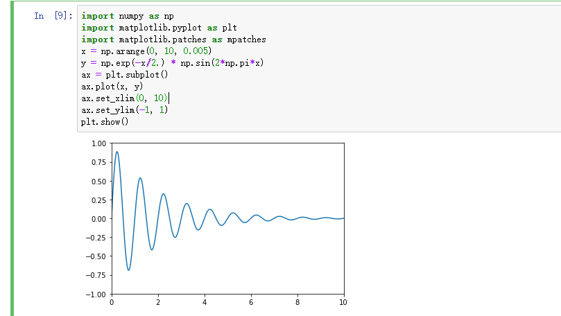 例如,在下图中,数据限制在x轴上从0扩展到10,在y轴上从-1扩展到1。