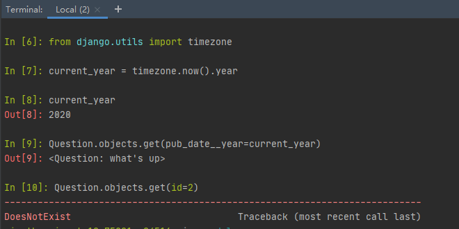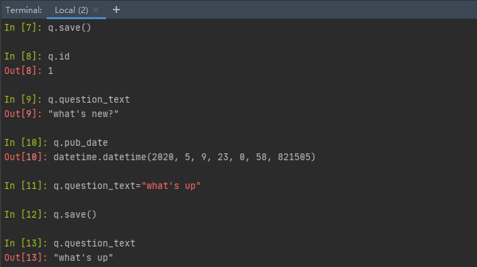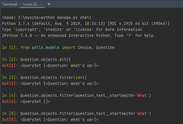 保存这些更改,然后再次运行以启动新的Python交互式shell :python manage.py shell