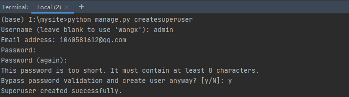 首先,我们需要创建一个可以登录到管理站点的用户。运行以下命令: