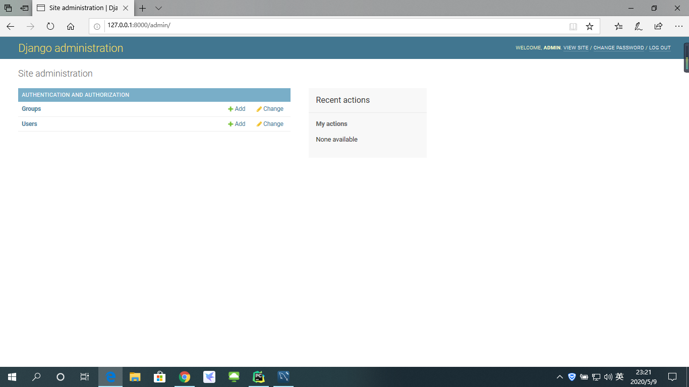 现在,尝试使用在上一步中创建的超级用户帐户登录。您应该看到Django admin索引页面: