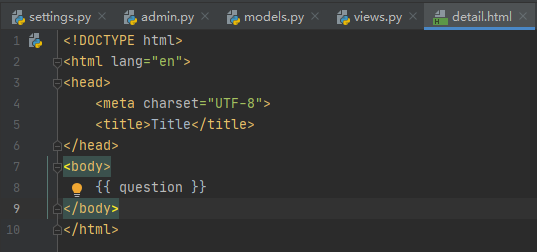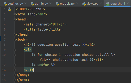 返回到detail()我们的民意调查应用程序的视图。给定context变量question,polls/detail.html模板如下所示: