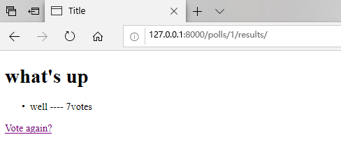 有人对问题进行投票后,vote()视图将重定向到该问题的结果页面。让我们写一个视图: