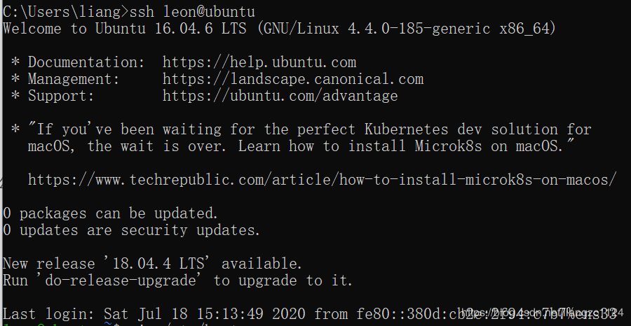sudo apt-get update命令以实现更新Ubuntu系统–>输入sudo apt-get install openssh-server命令以安装ssh- 若输出ssh命令的使用说明,则代表已经安装了。