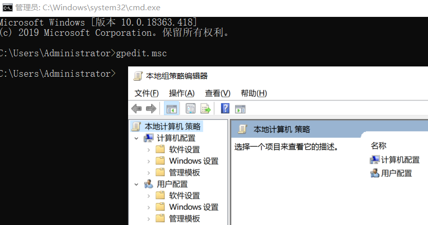 再次执行,运行gpedit.msc,打开正常