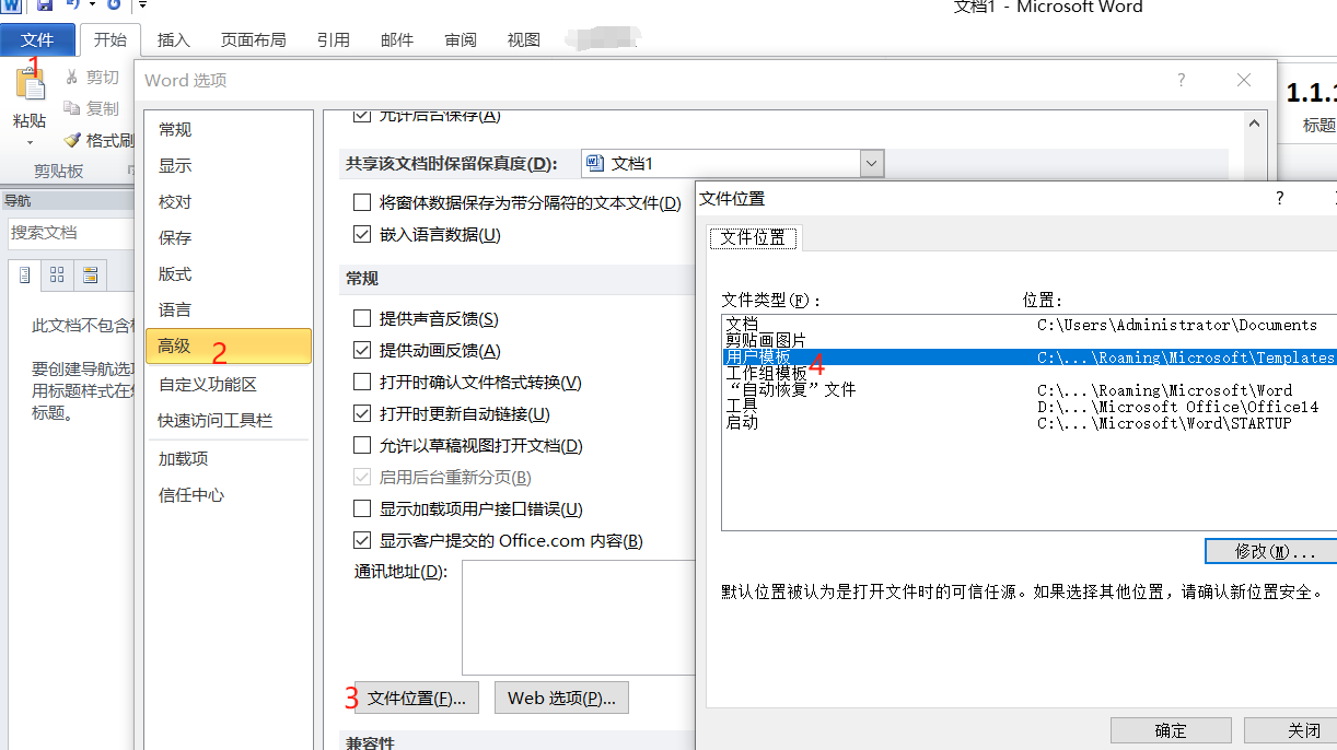 1、打开“文件位置”文件夹,将原来的Normal.dotm改成别的名称
