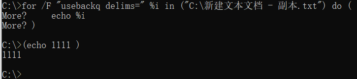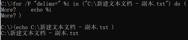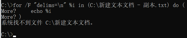 for /F "delims=" %i in (C:\新建文本文档 - 副本.txt) do ( echo %i )