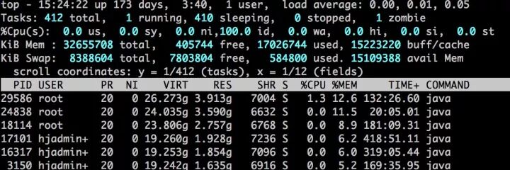 load average 域表示 cpu load 率情况,后面三段分别表示最近1分钟、5分钟、15分钟的平均 load 率。这个值不能大于当前 cpu core 数,如果大于说明 cpu load 已经严重过高。就要去查看是不是线程数设置的过高,还要考虑这些任务是不是处理时间太长。设置的线程数与任务所处理的时长有直接关系。