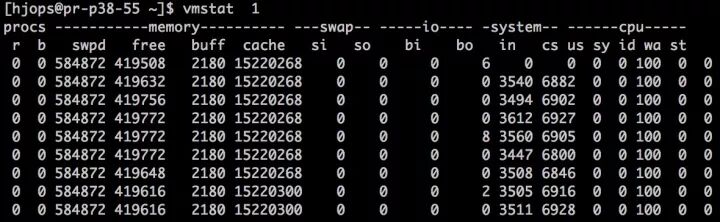 同时此命令可以在处理器过高的时候,查看内存是否够用是否出现大量的内存交换,换入换出的量多少 swap si 换入 swap so 换出。是否有非常高的上下文切换 system cs 每秒切换的次数,system us 用户态运行时间是否很少。是否有非常高的 io wait 等等。
