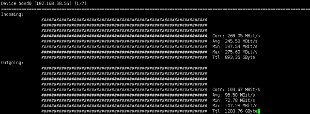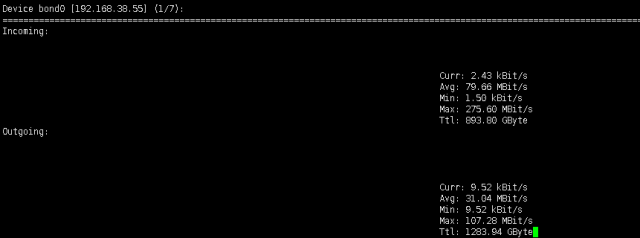 要确定网络带宽确实没有问题,我们还需要一个实时的监控网络流量工具,这里我们使用nload来监控下进出口流量问题。