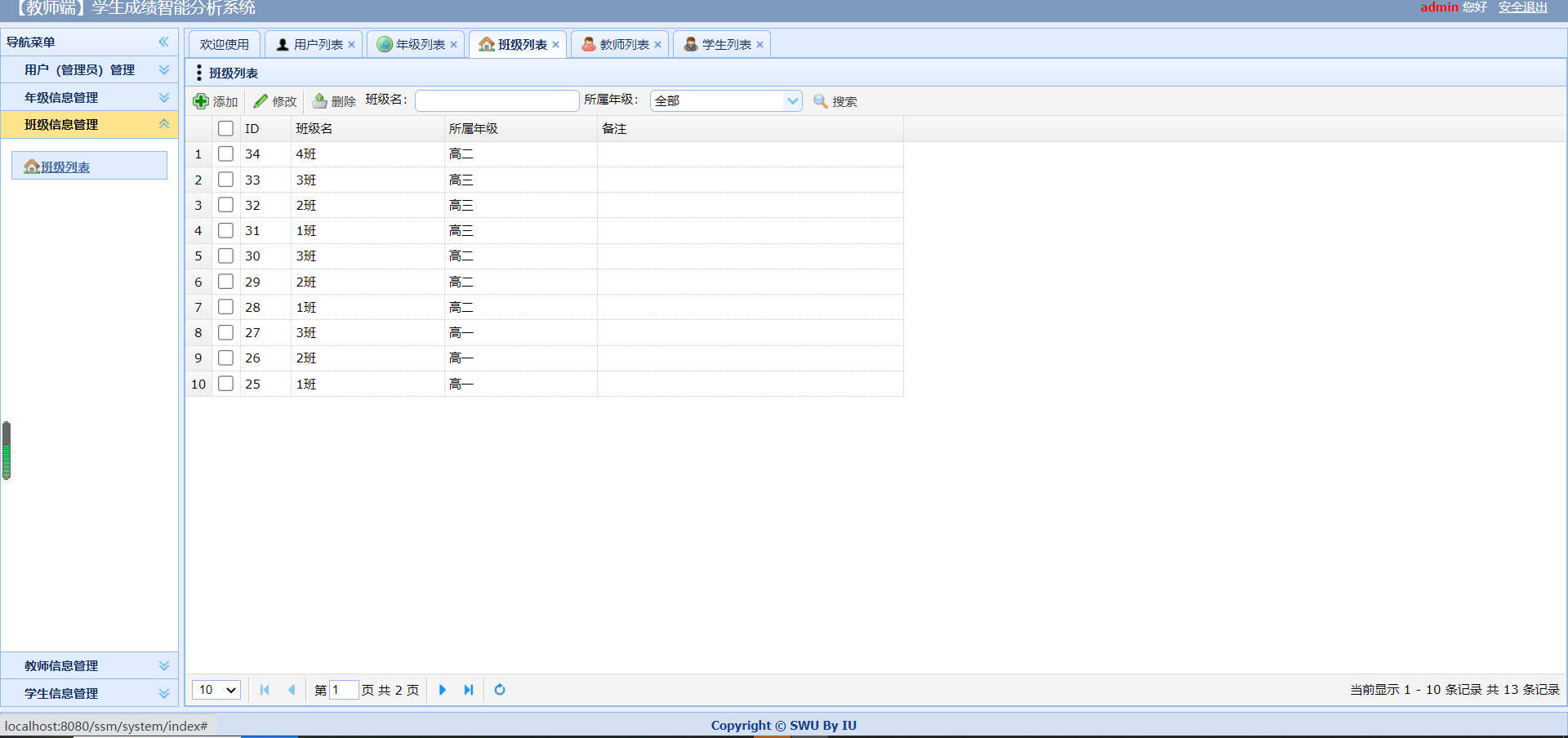 功能实现:用户管理、年级管理、班级管理、教师管理、学生管理、排课管理、考试管理、考点管理、考试知识点统计分析预测、成绩打印等...