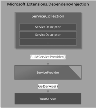 通过IServiceProvider获取服务实例;通过BuildServiceProvider方法可以获得服务容器ServiceProvider。