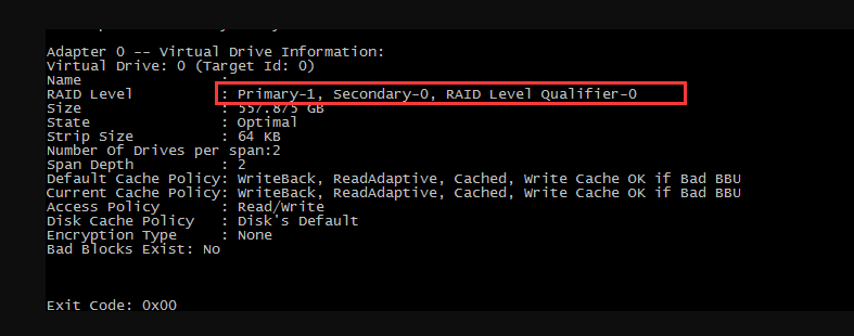 #/opt/MegaRAID/MegaCli/MegaCli64 ldinfo lall a0
