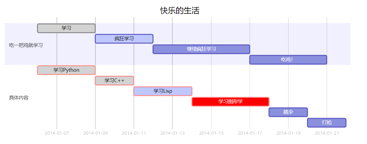 学习 :done, des1, 2014-01-06,2014-01-09