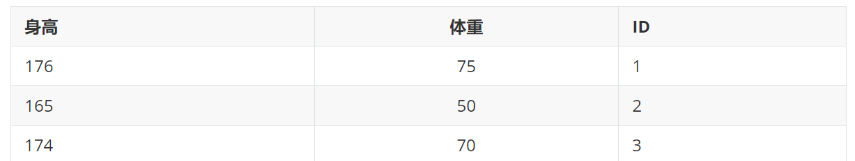 | 身高 | 体重 | ID |