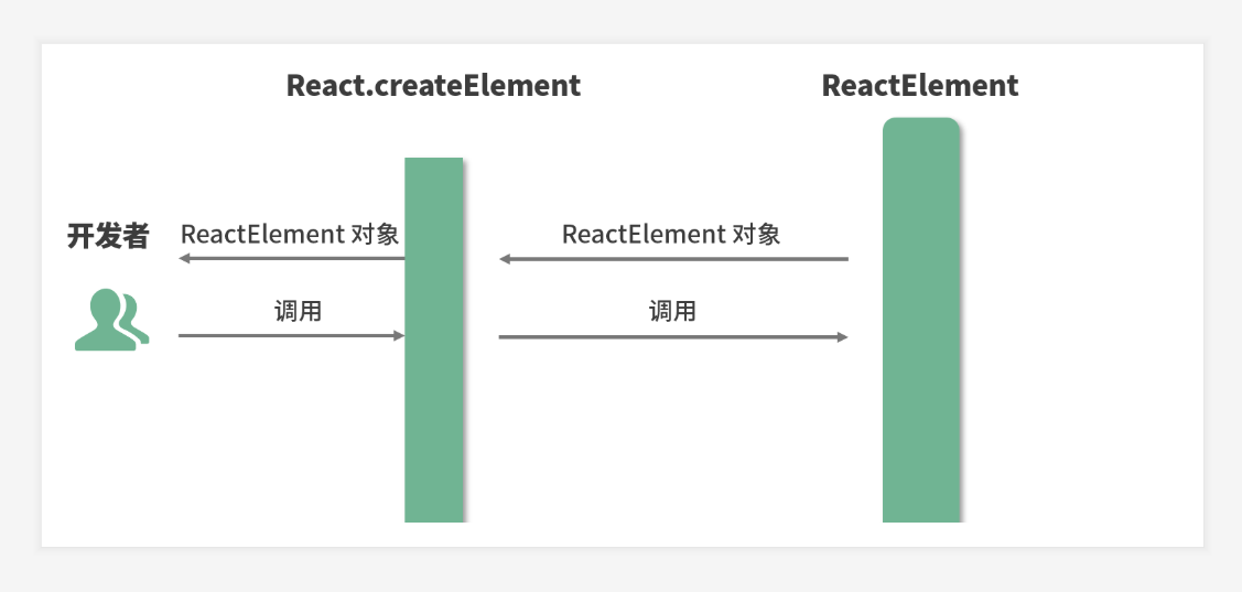 createElement 就像是 开发者 和 ReactElement 调用之间的一个 转换器, 一个数据处理层