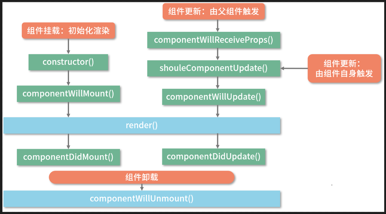 componentReceiveProps并不是由props的变化触发的,而是由父组件的更新触发的. componentWillUpdate和componentDidUpdate:componentWillUpdate会在render前触发,它和componentWillMount类似, 允许在里面做一些不涉及真实DOM操作的准备工作. 而componentDidUpdate则在组件更新完毕后被触发, 和componentDidMount类似, 这个生命周期函数也经常被用来处理DOM操作. 此外, 我们也常常将componentDidUpdate的执行作为子组件更新完毕的标志通知到父组件