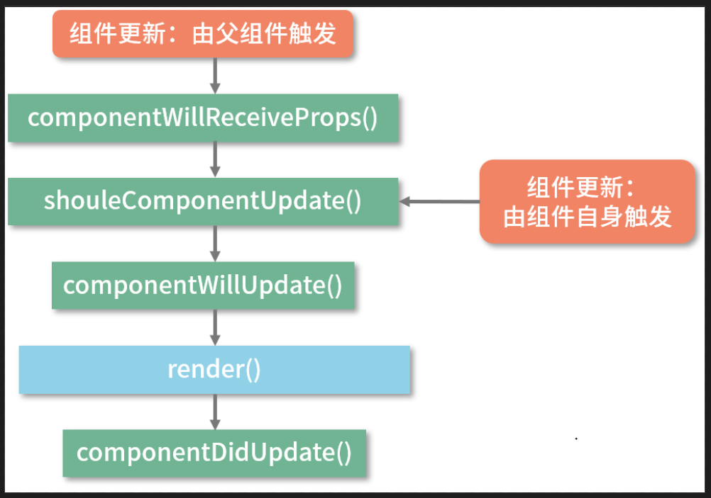 componentWillReceiveProps(nextProps)父组件触发的更新和组件自身的更新相比, 多了这个生命周期方法,nextProps表示接收到的新的props内容componentWillReceiveProps是组件在props内容发生了变化时被触发的. 这种说法不够严谨- React官方: 如果父组件导致组件重新渲染,即使 props 没有更改, 也会调用