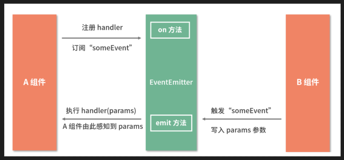 发布出去, 进而监听这个事件的func函数, 这就是最简单的发布-订阅案例. 发布-订阅模式的优点在于, 监听事件的位置和触发事件的位置不受限制 ==> 实现任意组件通信的场景