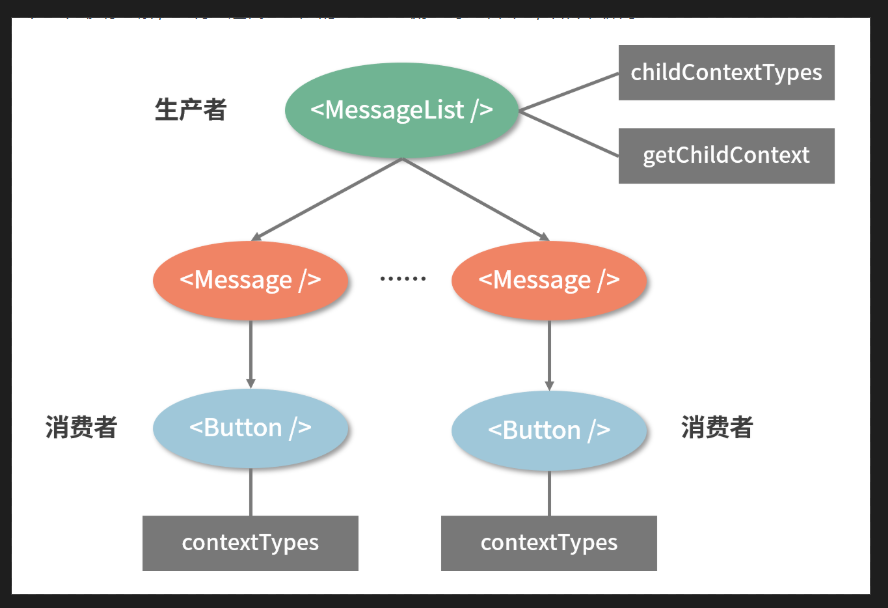 MessageList的组件树内部所有层级的组件都可以通过定义contextTypes来成为数据的消费者, 进而通过this.context访问到MessageList提供的数据.