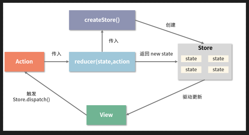 action,使用dispatch:action本身只是一个对象, 要让reducer感知到action,需要store.dispatch(action)