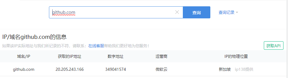 可以进入网址:https://github.com.ipaddress.com/#ipinfo查询IP地址