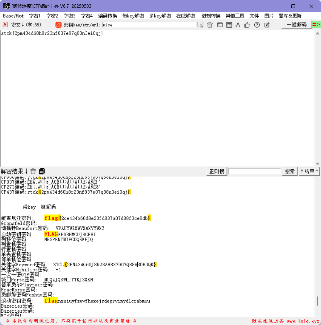 密文:stck{2pm434d60h8r23nf837e07q88n3ei0qj}