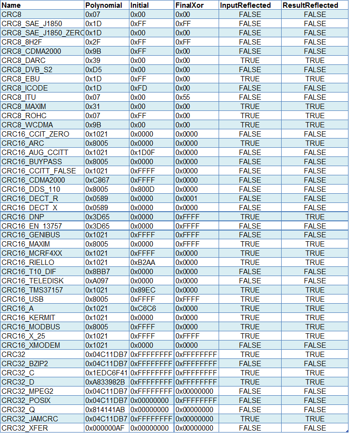 - CRC16_CCITT_FALSE 0x1021 0xFFFF 0x0000 false false