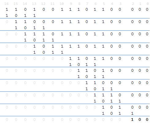 但是,现实要复杂一些。二进制数(除数和除数)不被视为普通整数值,而是被视为二进制多项式,其中实际位用作系数。