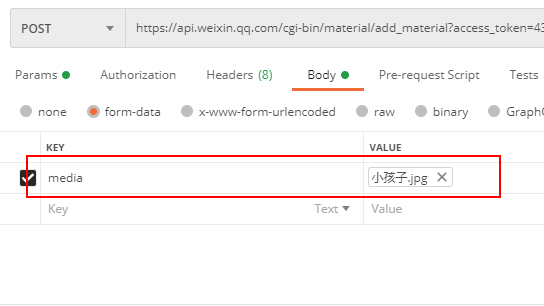media 是 form-data中媒体文件标识,有filename、filelength、content-type等信息
