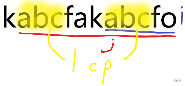 接下来当 \(q>p\) 时显然有 \(q\ge p+1\),也就是说下标为 \(sa_i\) 的后缀和下标为 \(sa_j\) 的后缀中前 \(p+1\) 个字符都一样。 但是因为 \(p\) 是 \(\min(\text{lcp}(i,k),\text{lcp}(k,j))\),所以下标为 \(sa_k\) 的后缀的第 \(p+1\) 位至少和它们两个中一个的第 \(p+1\) 位不一样。 而因为 \(i\le k\le j\),所以如果下标为 \(sa_j\) 和下标为 \(sa_i\) 的后缀的第 \(p+1\) 位一样而和下标为 \(sa_k\) 的后缀的第 \(p+1\) 位不一样那么它们两个的字典序中显然就不会夹着个 \(k\) 了,所以它们两个的第 \(p+1\) 位不一样,得出 \(q\le p\),从而有 \(q=p\)。
