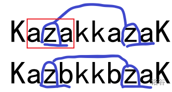 这个题怪显然的,把这个字符串倒着拼在它本身后面之后跑板子,然后这样匹配: