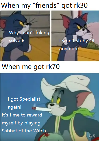 最后水 luogu 讨论区看到了魔怔有自头像入,看完练习情况心里嘲讽了一下这个不学无术的家伙🤣。