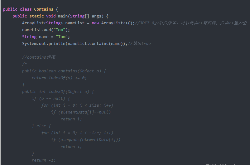 //首先name传到contains方法中的参数,即o。o是Object类型的,name为字符串类型。所以传入时会发生类型上转,name对象为上转型对象。