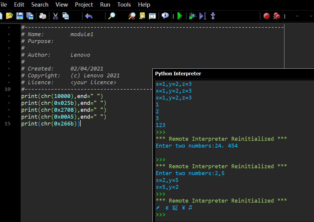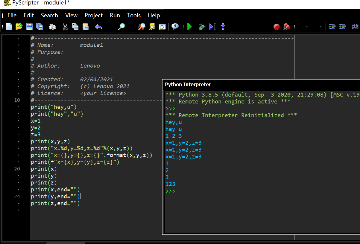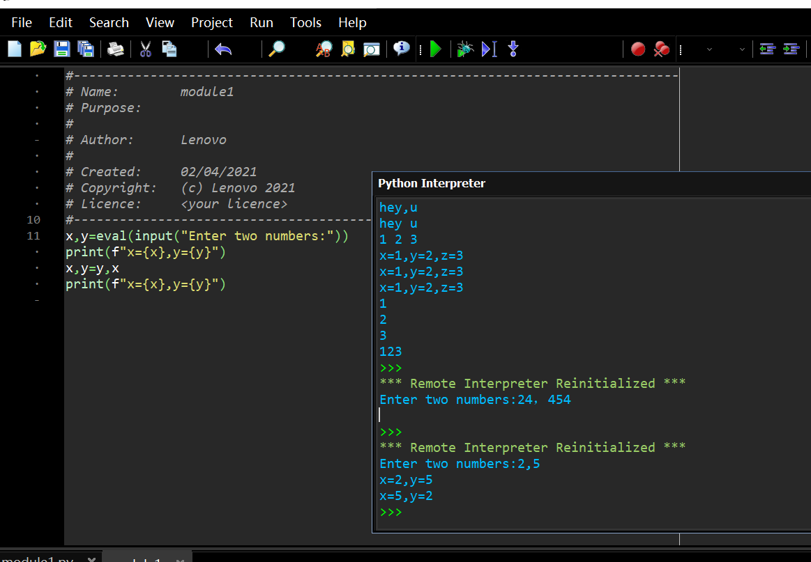print("x=%d,y=%d,z=%d"%(x,y,z))