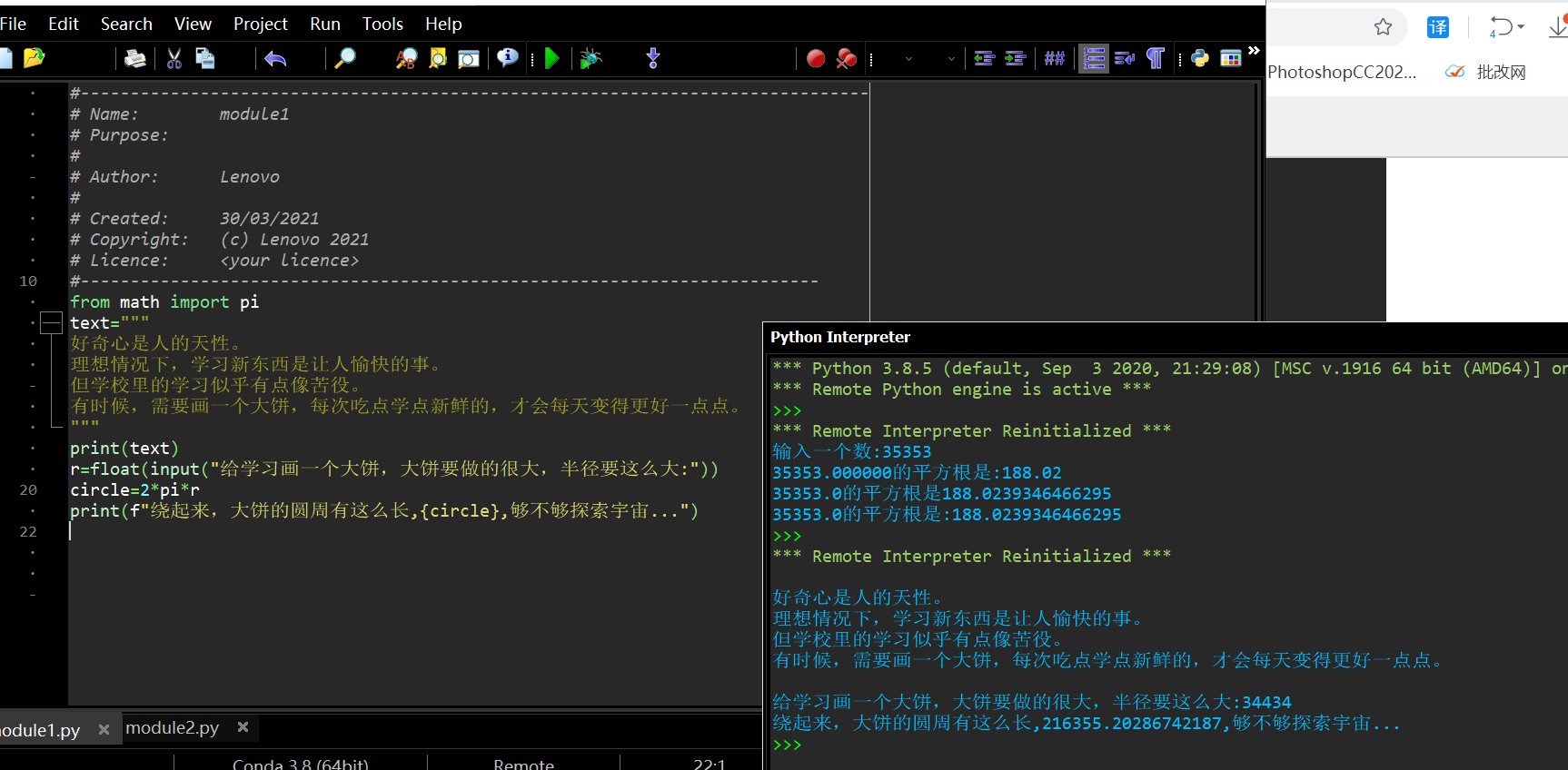 r=float(input("给学习画一个大饼,大饼要做的很大,半径要这么大:"))