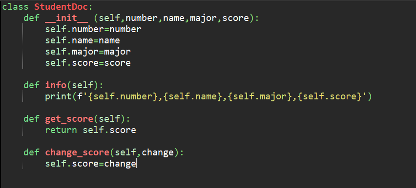 print(f'{self.number},{self.name},{self.major},{self.score}')