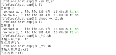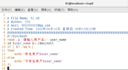 2、编写一脚本,判断输入用户名是否存在,输出结果只能是存在该用户或者不存在该用户,不能有其他数据输出。