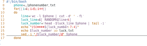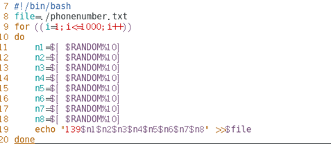 7、编写脚本,生成一个phonenumber.txt文件,文件内容为随机产生以139开头的手机号1000个,每个手机号占一行。