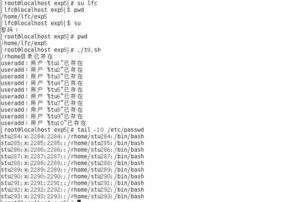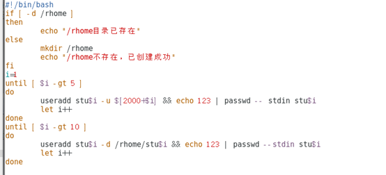 9、使用until语句批量创建10个用户,要求stu1-stu5用户的UID分别为2001-2005,stu6-stu10用户的家目录分别在/rhome/stu6-/rhome/stu10。