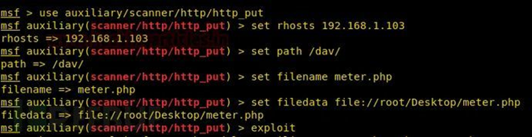 用其内置的auxiliary/scanner/http/http_put模块就能完成相关shell文件meter.php的上传操作: