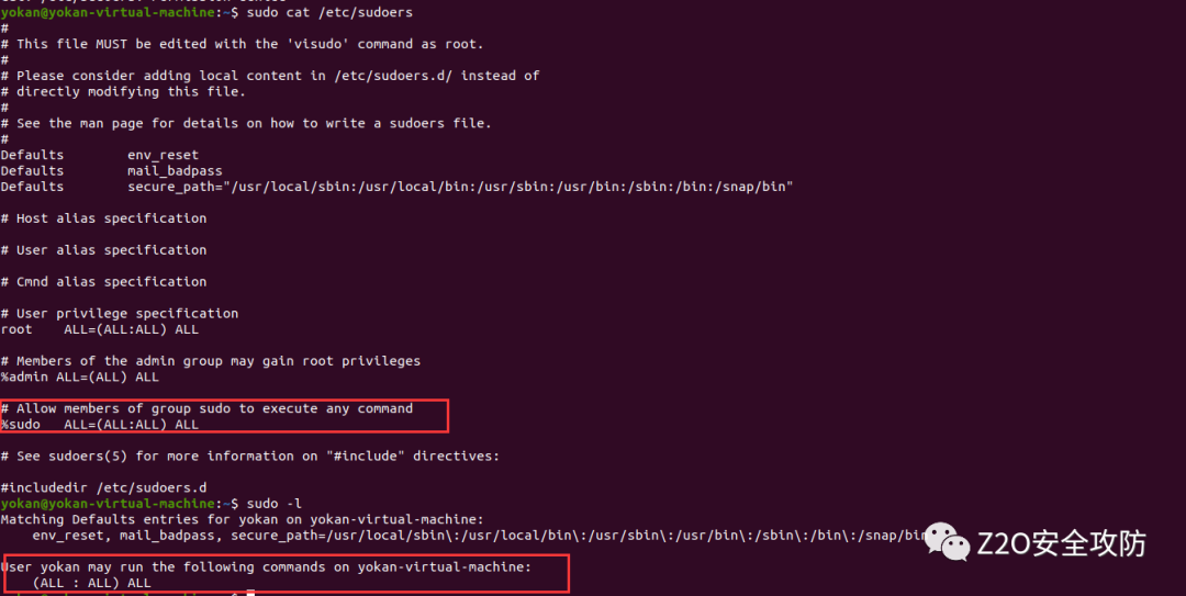 cat /etc/sudoers 可以使用sudo提升到root的用户