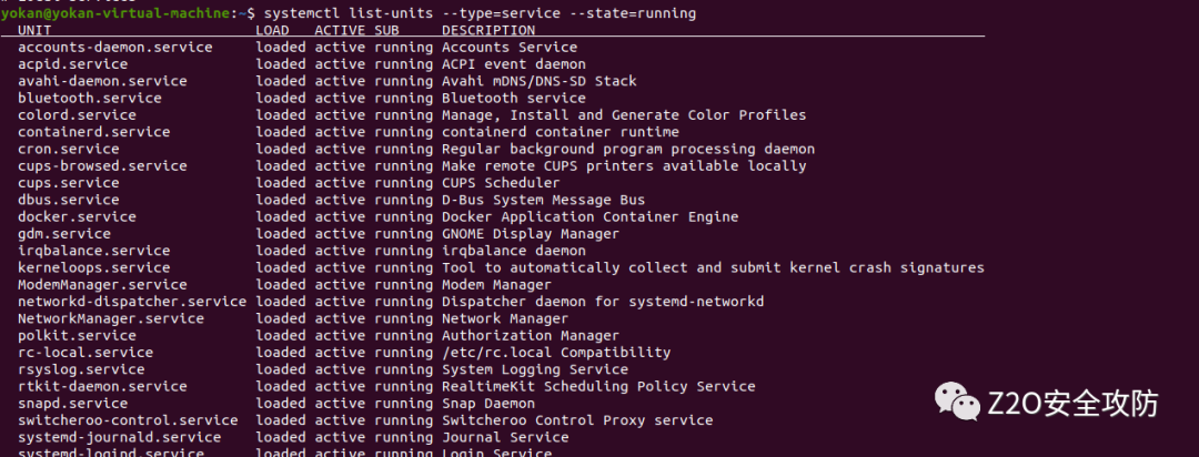 systemctl list-units --type=service --state=running 查询已经开启的服务