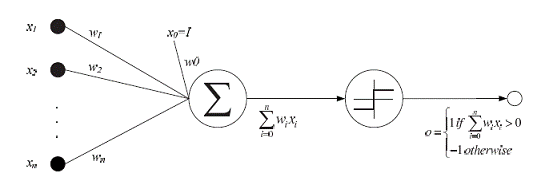 神经元是构建神经网络的最基本单位, 这张图就是一个人工神经元的原理图,非常简单,一个神经元由一个加法器和一个门限器组成。