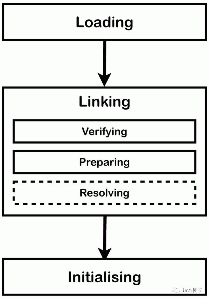 链接(Linking)是校验类或接口并准备类型和父类父接口的过程。链接过程包含三步:校验(verifying)、准备(preparing)、部分解析(optionally resolving)。